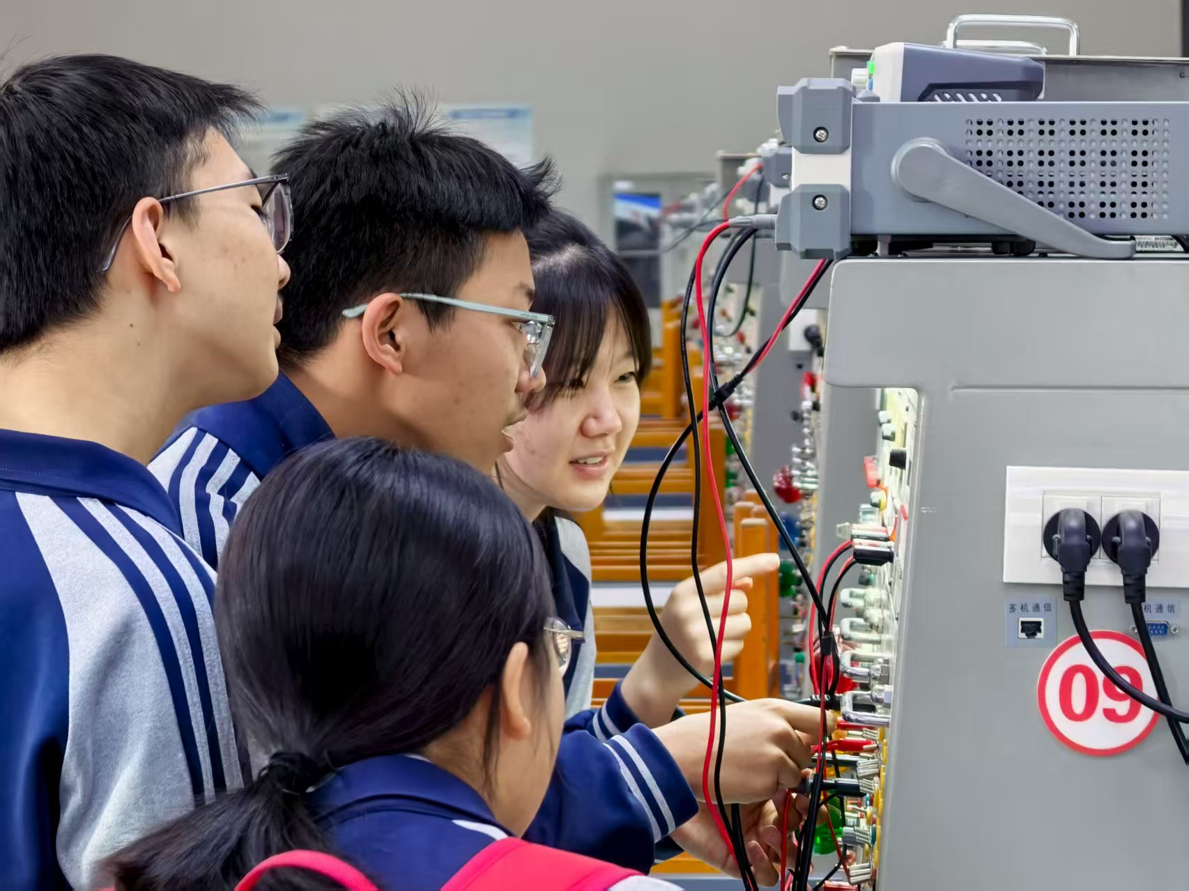 活动中,宁夏大学招生服务协会20余名学长学姐担任志愿者,带领学弟学妹们先后走进致知楼416实验室及5楼基础物理实验中心、致知楼1楼机械工科实训中心、致知楼3楼电气工科实训中心进行参观学习。志愿者们热情细致地为同学们讲解相关知识、答疑解惑,并结合自身经历分享学习经验与丰富多彩的校园生活,让大家近距离感受大学浓厚的学习与实践氛围。